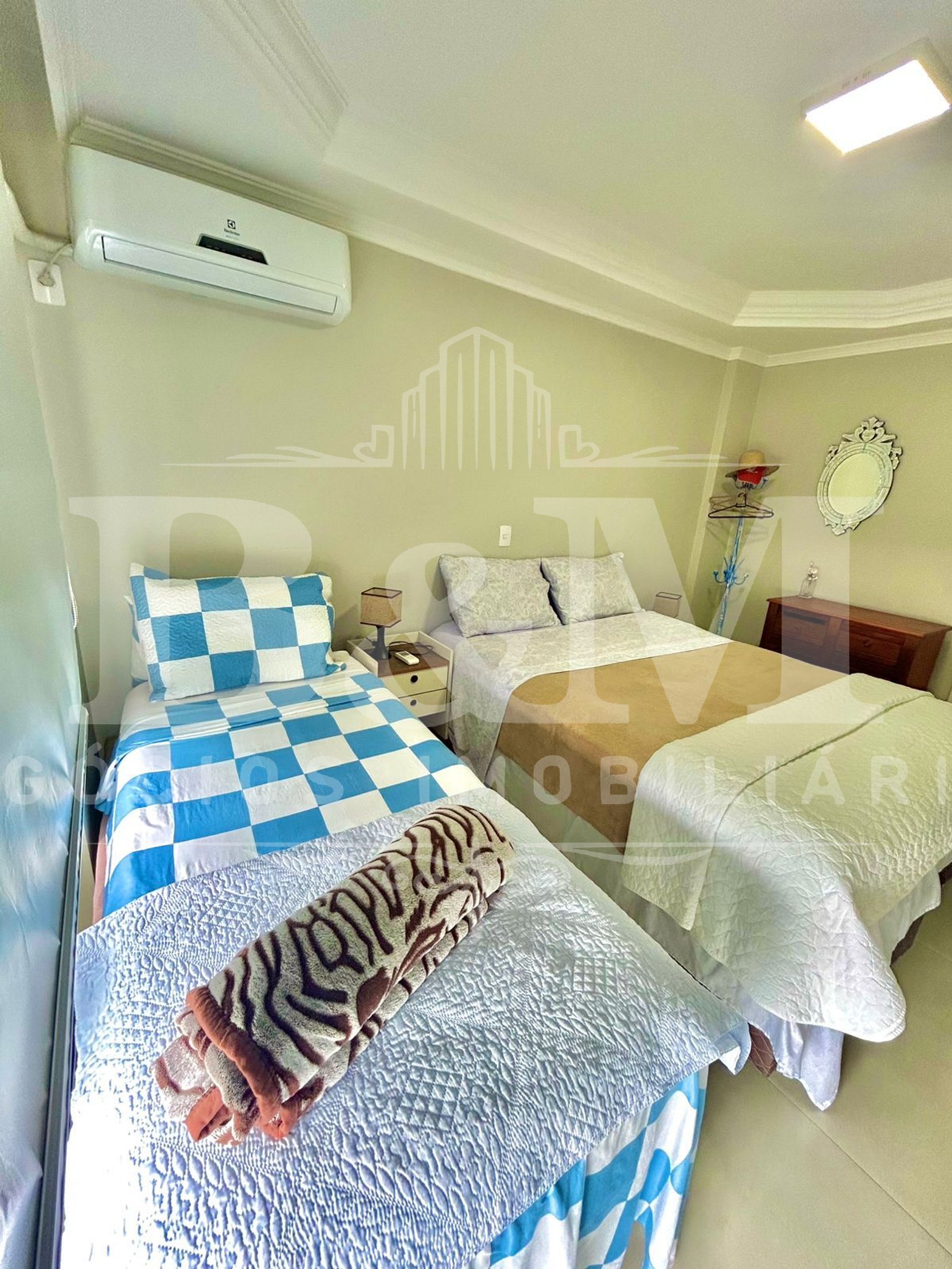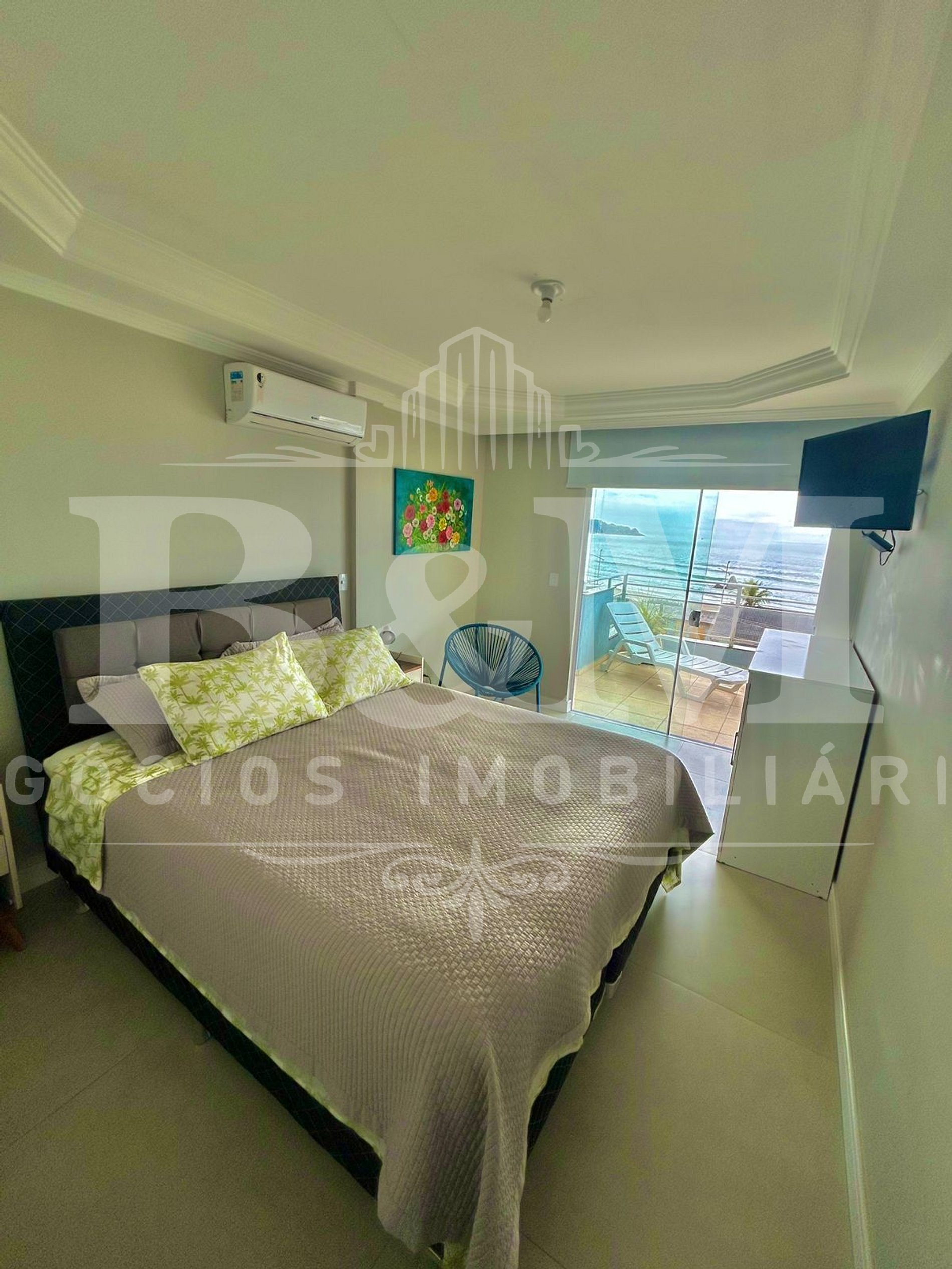 Imóvel com 3 quartos, sendo 1 suíte, todos com ar-condicionado e vista para o mar.
