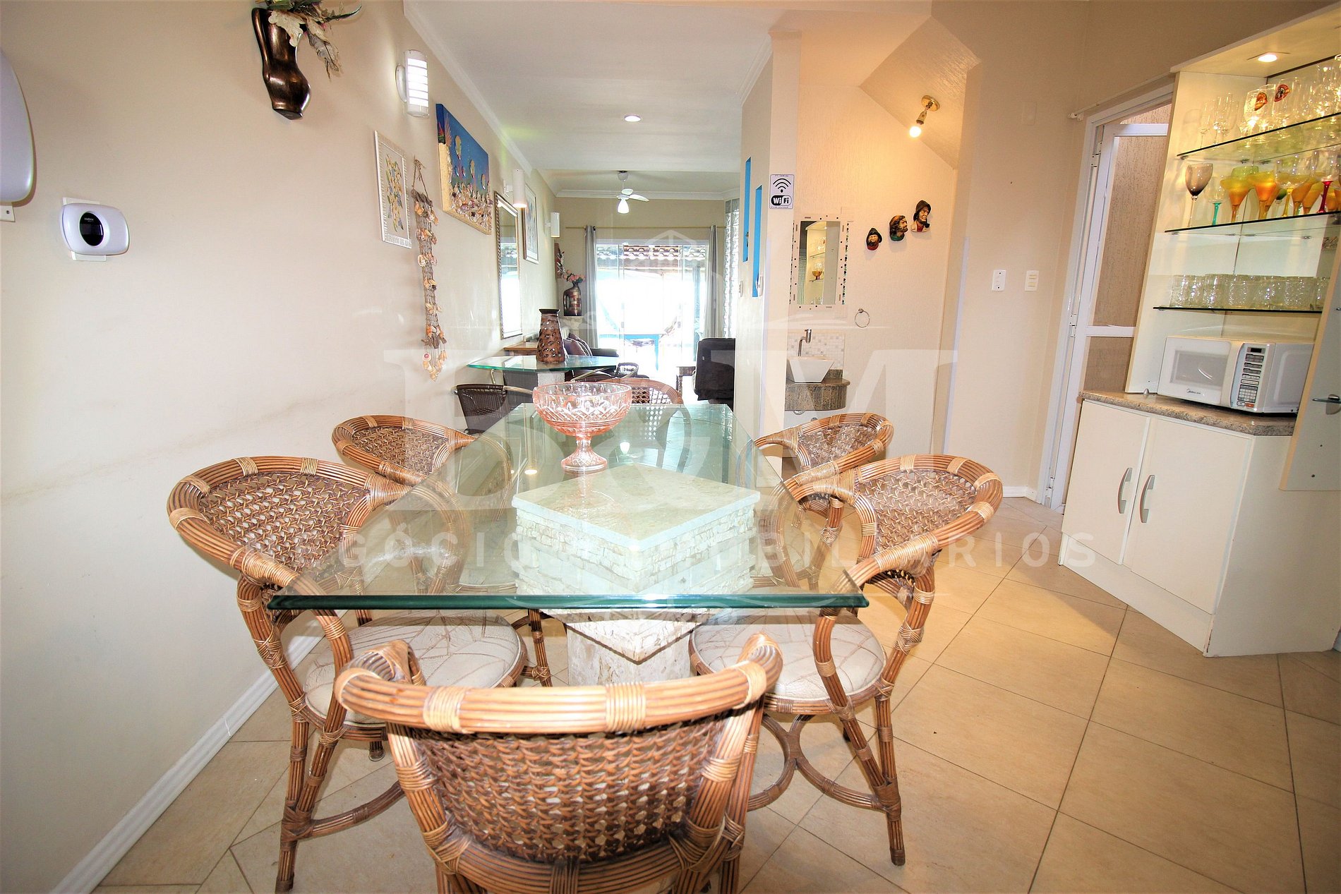 O imóvel está localizado na Rua Ariramba, em uma área tranquila e de fácil acesso. Os hóspedes terão à disposição toda a casa de uso exclusivo, incluindo as 4 suítes climatizadas, salas, cozinha equipada, lavanderia, terraço com vista para o mar e área externa com piscina e churrasqueira.