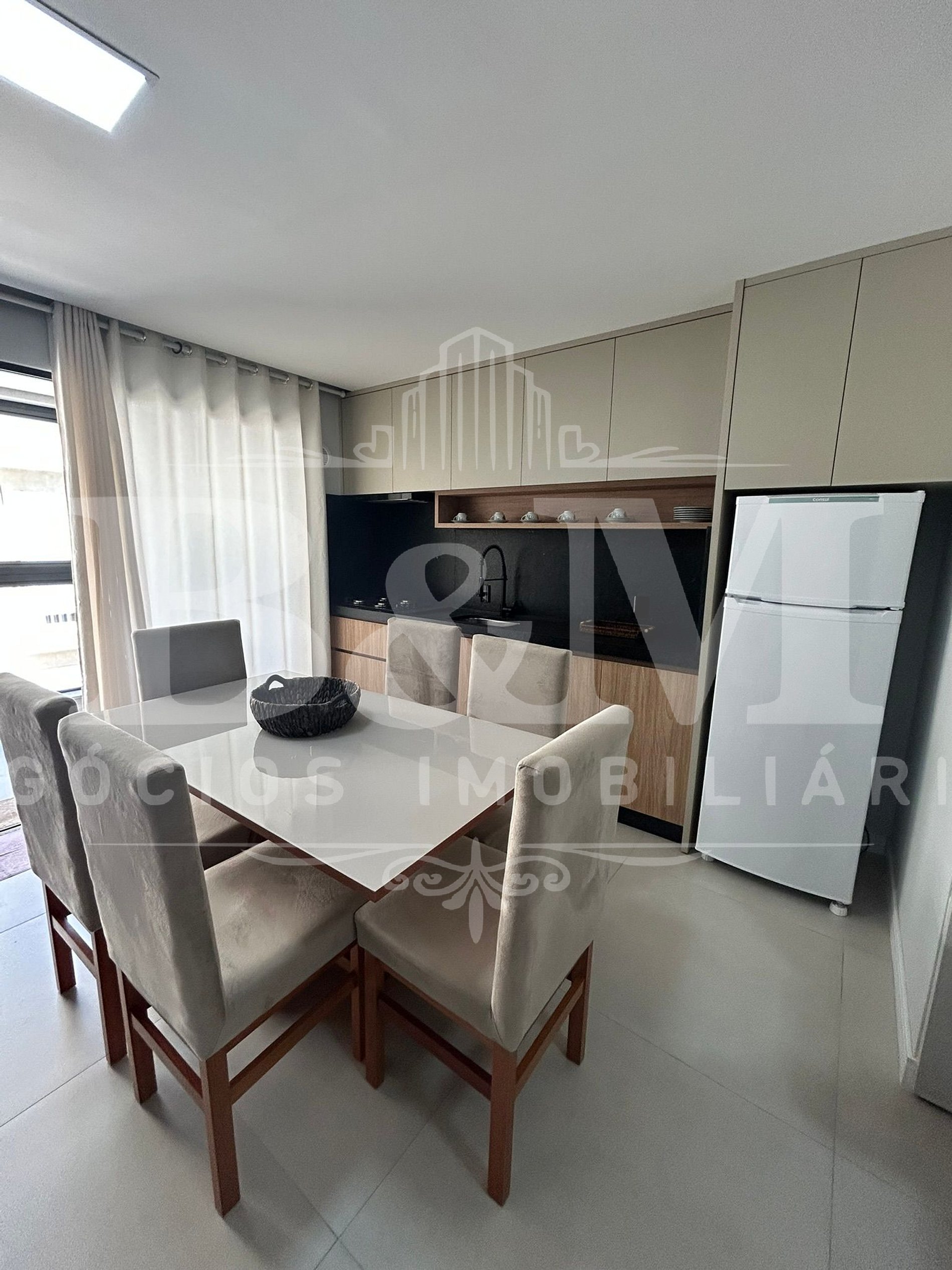 Ambientes: sala ampla integrada à cozinha, perfeita para receber amigos e colocar o papo em dia após um dia de passeio.